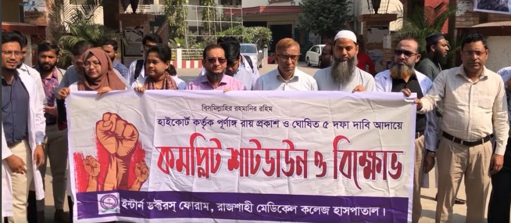 রাজশাহী মেডিকেল কলেজ (রামেক) হাসপাতালের ইন্টার্ন ডাক্তারদের পাঁচ দফা দাবি আদায়ে কমপ্লিট শাটডাউন কর্মসূচি পালন।
