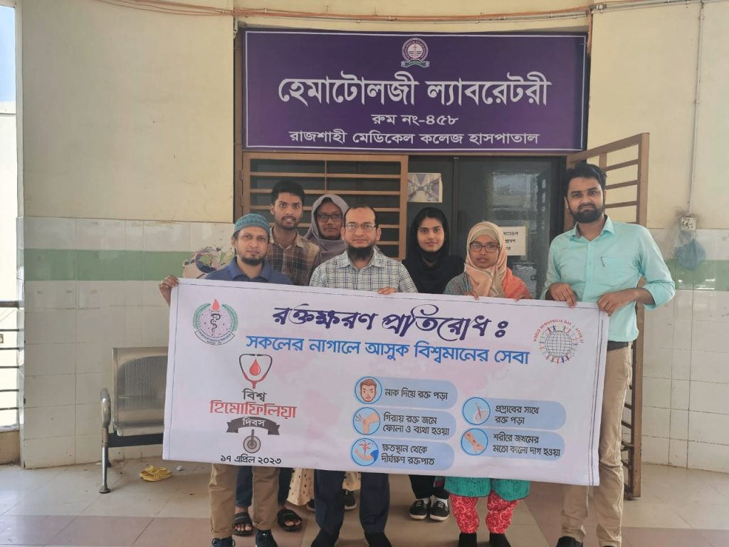 ‘বিশ্ব হিমোফিলিয়া দিবস’ উপলক্ষে রাজশাহী মেডিকেল কলেজ হাসপাতাল, হেমাটোলজী বিভাগ এর উদ্যোগে সেমিনার ও সচেতনতামূলক অনুষ্ঠানের অংশবিশেষ।